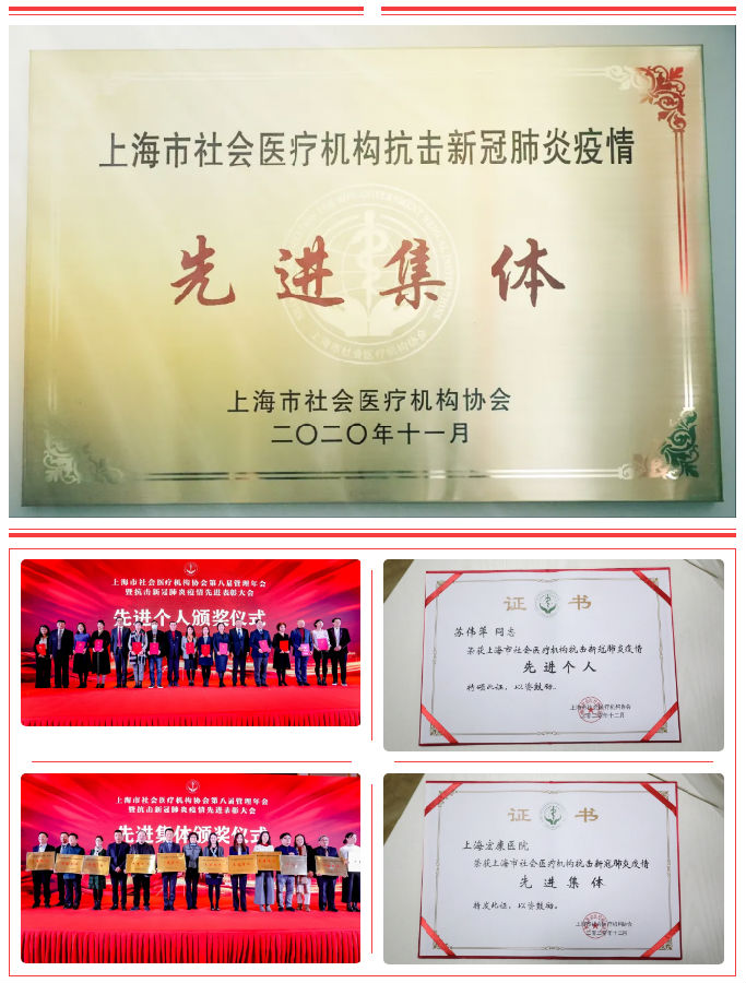 本次会议还对本市社会办医抗击新冠疫情工作进行了总结回顾,上海宏康医院和医院执行董事苏伟萍被评为“先进集体”和“先进个人”,现场接受隆重表彰。