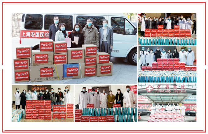 疫情初期,我院累计输送志愿者人数共27名,志愿服务90天,总时长达1116小时,共计捐款捐物折合人民币近70万元,包括:33万元善款,一次性帽子、防护眼镜、防护面罩,医用酒精等医用物资;向普陀区各街镇、社区以及西藏亚东县捐赠中药茶包及慰问品,与全社会合力战疫。区、镇两级领导多次莅临宏康医院现场调研疫情防控工作,慰问防疫前线职工,并提出肯定和表扬。