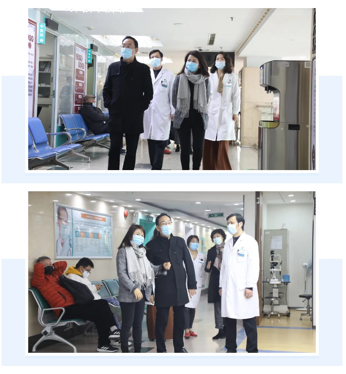 闫东方会长一行首先实地参观了宏康医院的诊疗环境。在服务窗口,根据院方设置“爱的一米线”提示,患者自觉保持安全距离,秩序井然的挂号、取药。在门诊科室,大家间隔就坐候诊,医院防疫督查人员在各楼层巡视,监督大家做好个人防护工作,严格执行“一人一诊一室”制度,确保诊疗活动安全有序开展。