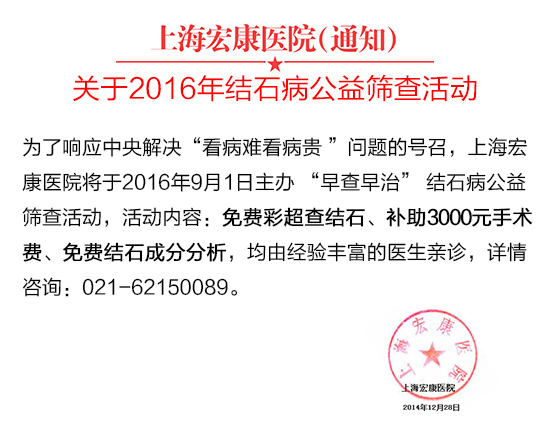 2016年上海宏康医院“早查早治”结石病公益筛查活动